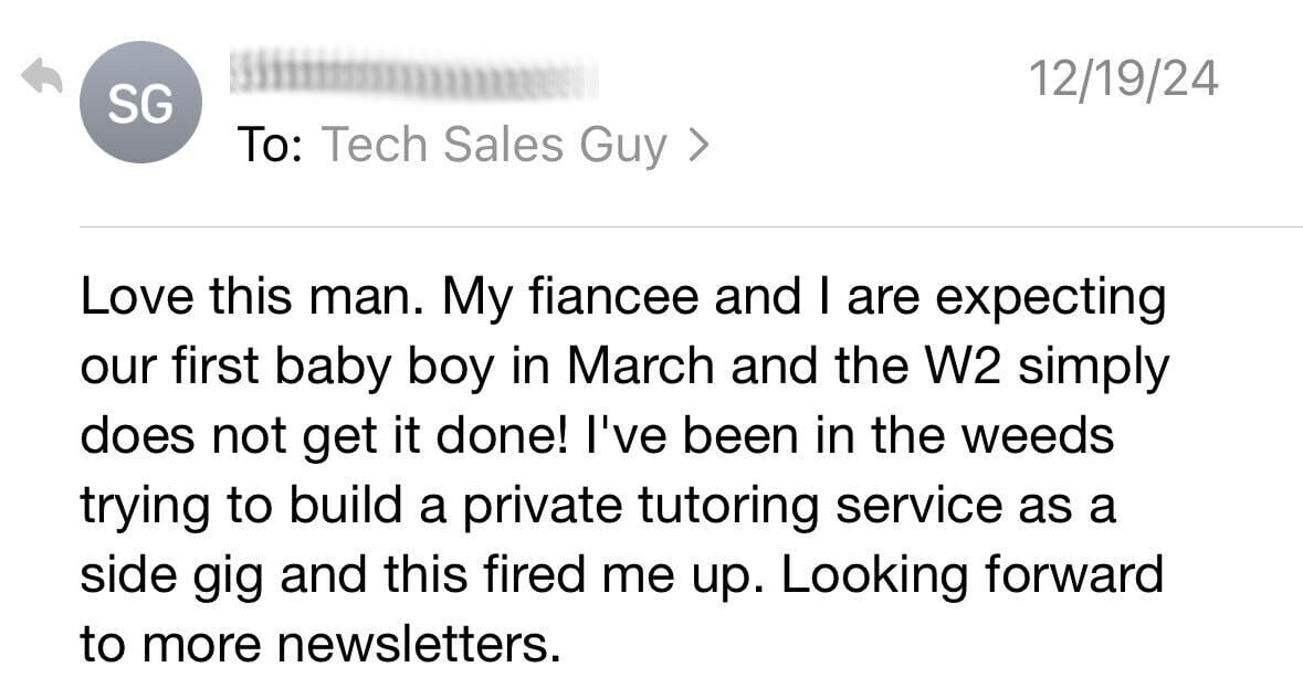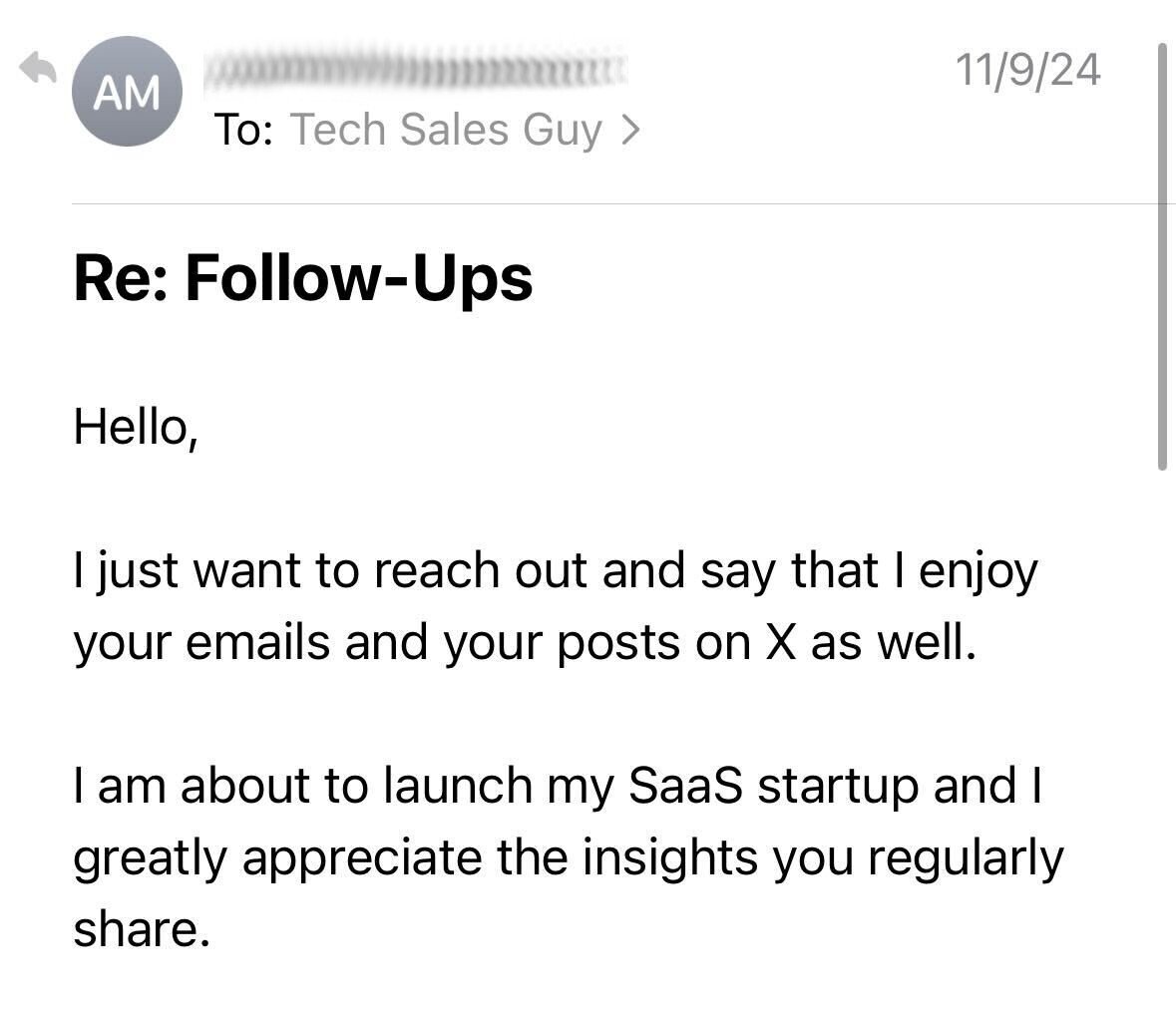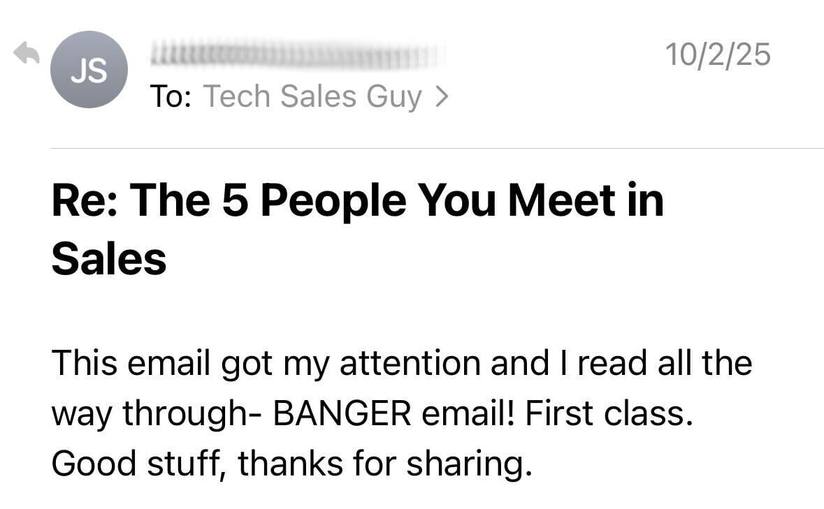 Psst … I respond to EVERYONE who replies to my emails with personalized insights from the frontline of tech sales…