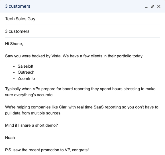 "We're helping other VPs at AI companies like [Name] avoid missed product deadlines by automating the design process."