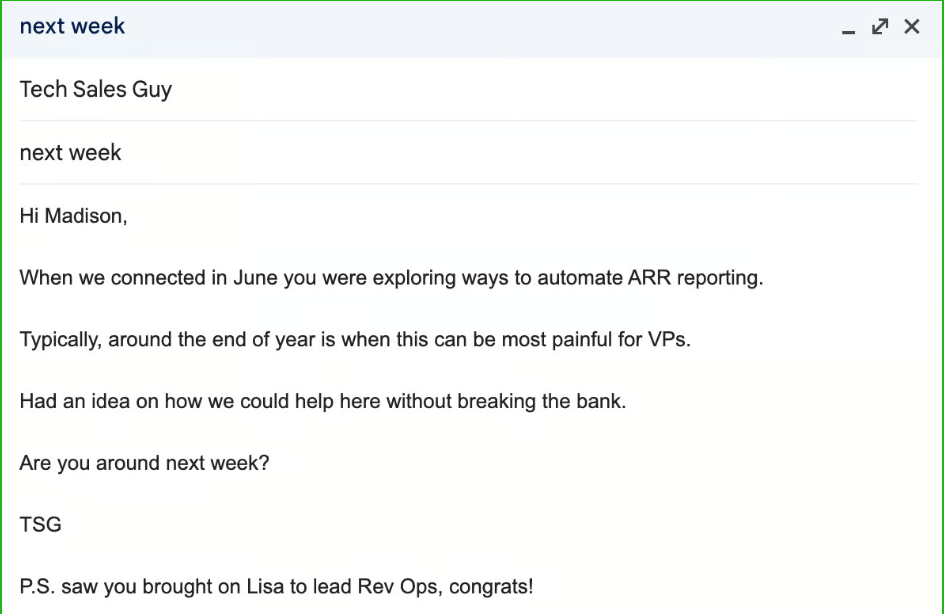 What used to take 20-30 minutes to form a POV on why you’re reaching out.
