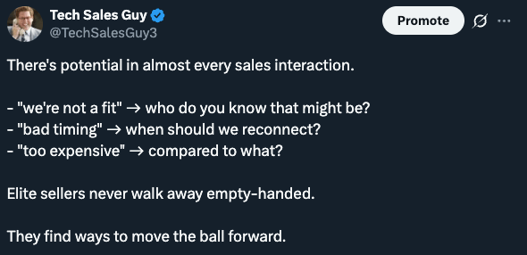“I’ve got a selfish question here, Dan — and I’m only asking because I can see how well connected you are. Now that you know more about our company and what an ideal partner looks like, who else do you think I should connect with?”