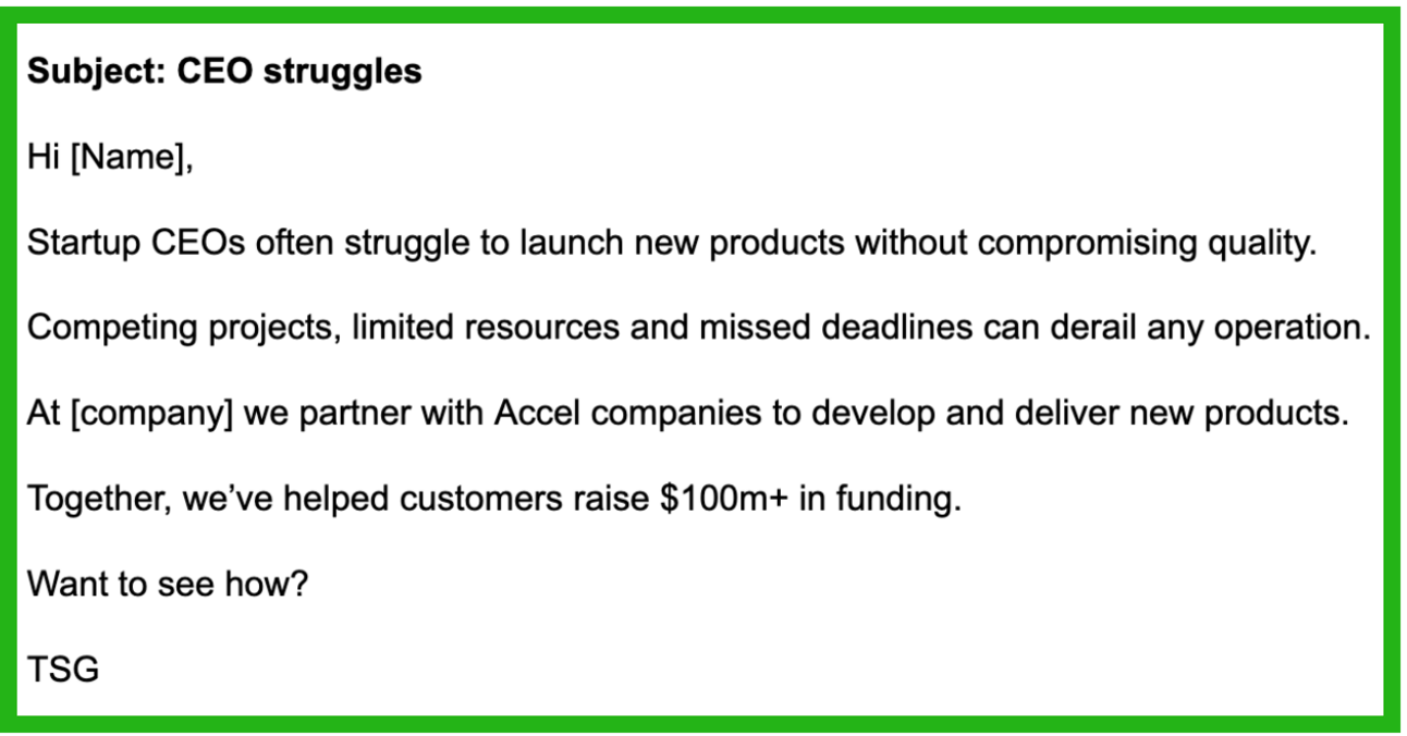 What it is: Messaging that speaks to pain, not features.