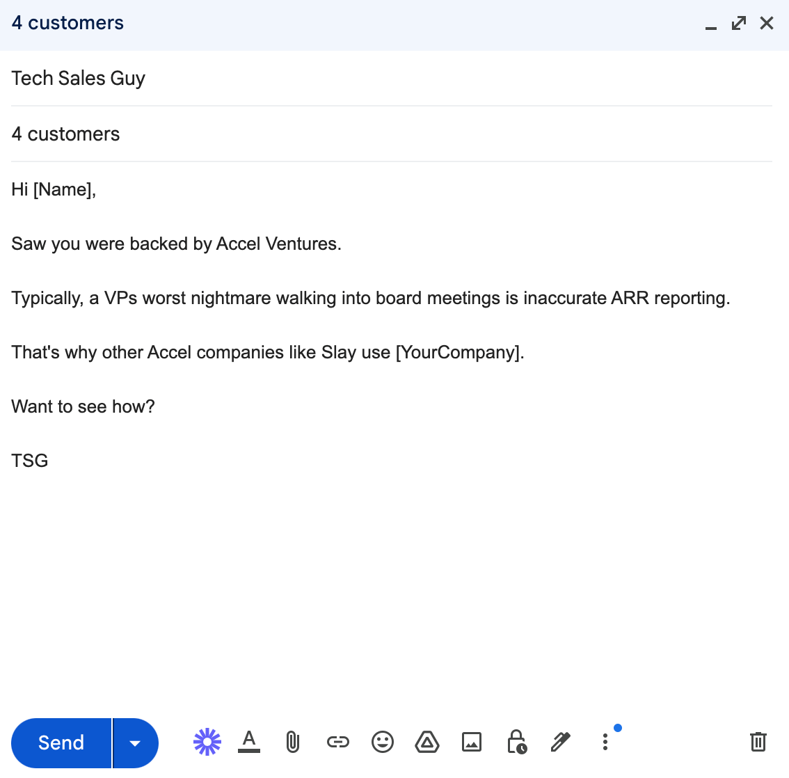 I’ve used a similar approach to this at other companies and the results have translated into conversations and pipeline.