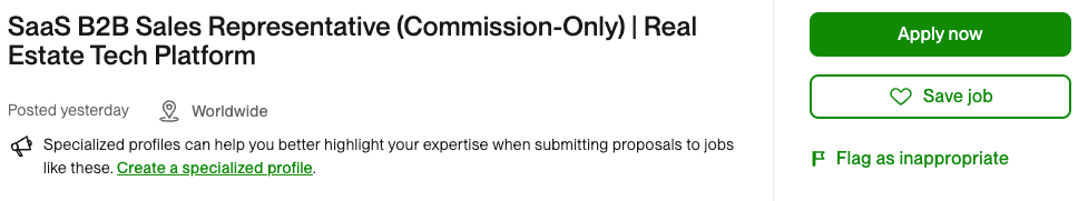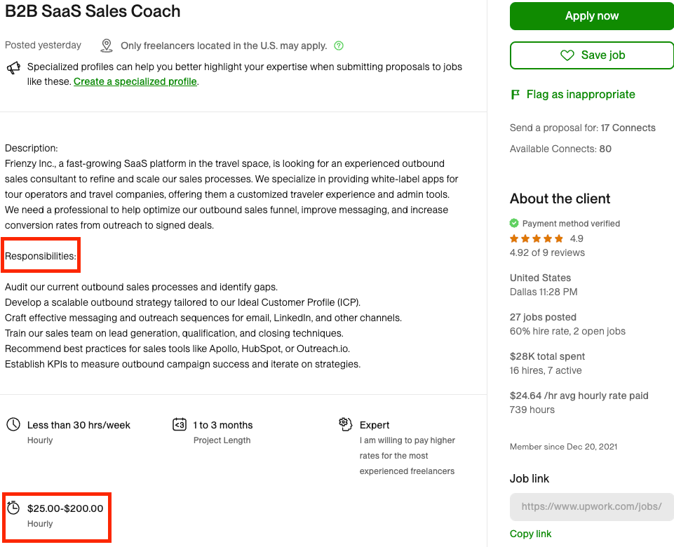 I decided to run a search for “outbound sales” opportunities on Upwork and came across a Founder that was looking for help with email copywriting.