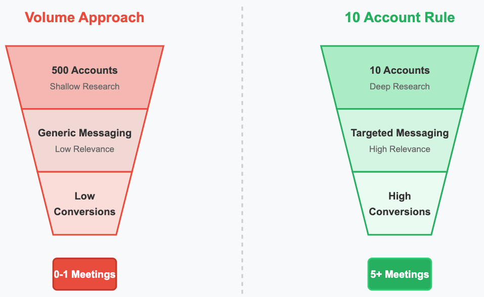 The 10 Account Rule works. The problem? Research time kills ROI.