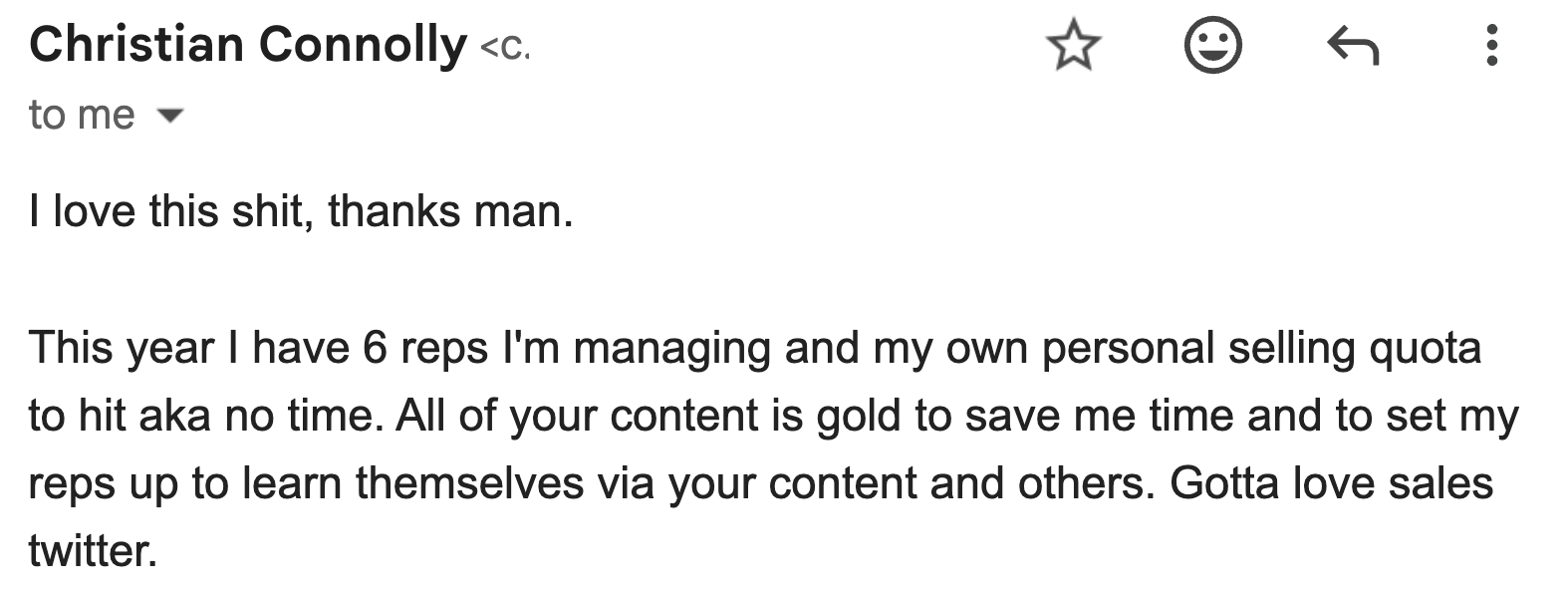If you're early in your career or trying to break into tech sales or take the next step in your career, shoot me an email in Q1.